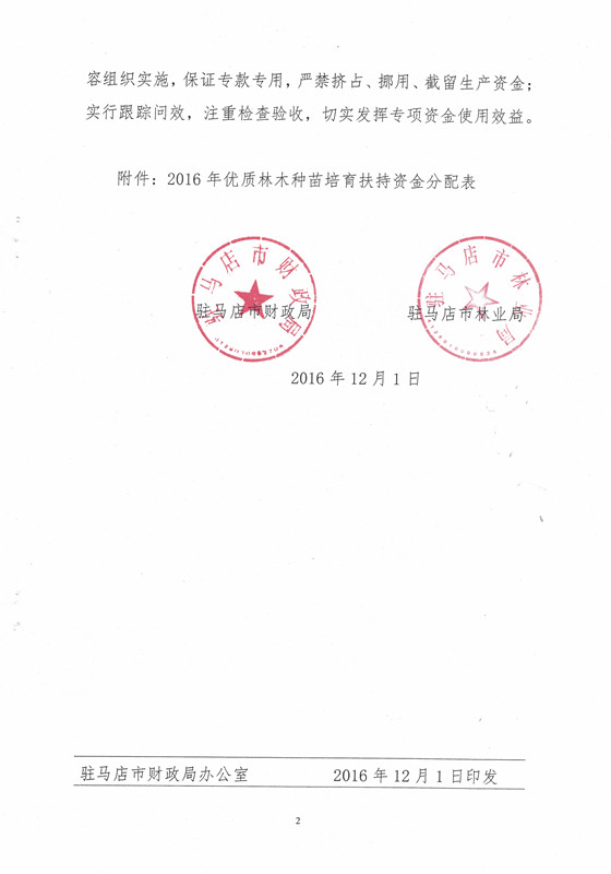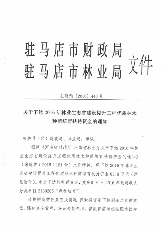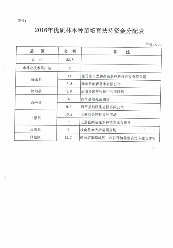 关于下达2016年林业生态省建设提升工程优质林木种苗培育扶持资金的通知