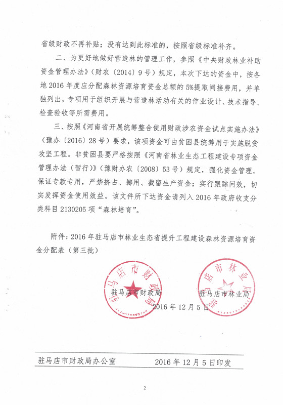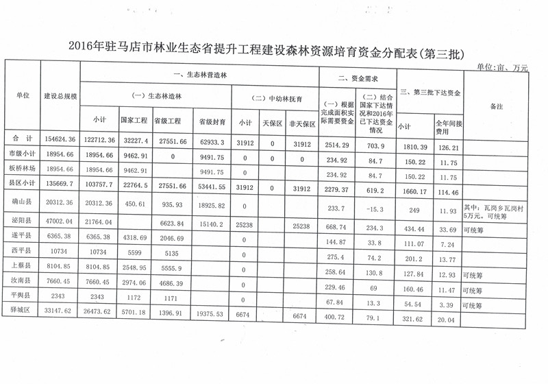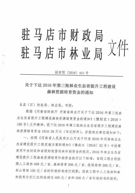 关于下达2016年第三批林业生态省提升工程建设森林资源培育资金的通知